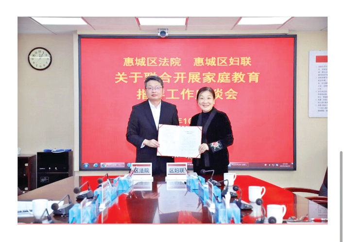 惠州日報訊 (記者謝菁菁 通訊員黃麗心)日前,惠城區婦聯與區人民法院共同舉辦家庭教育指導工作座談會,共同啟用“家庭教育指導中心+家事糾紛調解中心”,并簽署聯合開展家庭教育指導工作的實施意見。