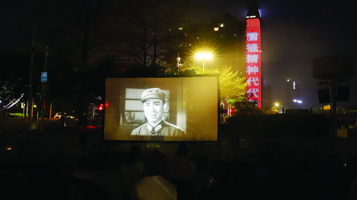 當天晚上,在市區東江公園,主辦方還舉辦學雷鋒精神紅色電影放映活動,特別選取了1965年拍攝的黑白電影《雷鋒》,并使用5毫米105電影膠片機放映,滿滿的年代感。與此同時,惠州江北CBD坐標建筑榮燦惠州中心外墻LED屏幕上也亮起“雷鋒精神代代傳”“文明心、志愿情,學習雷鋒我先行”等字幕,向雷鋒致敬。