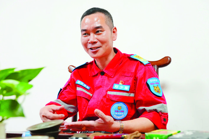 惠州市狼幫公益救援隊黨支部書記鄭小滿是一名退役軍人。從部隊退役后,他積極主動參加公益活動,捐資助學(xué),關(guān)愛退役老兵、特殊群體,用行動踐行志愿服務(wù)精神,奉獻新時代。今年3月,鄭小滿獲評第九批廣東省崗位學(xué)雷鋒標(biāo)兵榮譽稱號。